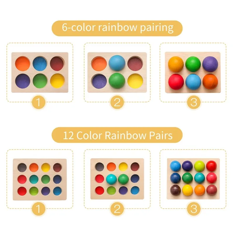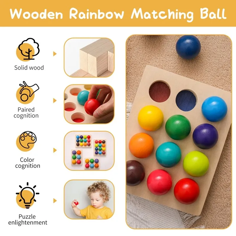 Arco-íris bola correspondência sensorial jogo cor cognitiva placa de classificação de madeira montessori brinquedos para crianças educação precoce brinquedo pré-escolar